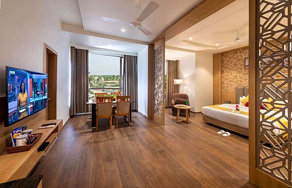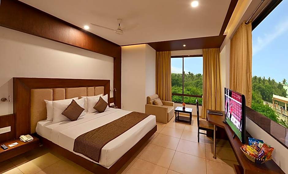 Four room options stand ready to suit different needs: Superior, King — 291 square feet with a King-size bed; Deluxe — 269 square feet with a Queen-size bed; Suite — 355 square feet with a King-size bed; Deluxe, King — 269 square feet with a Queen-size bed. All accommodations sleep up to 2 adults and 1 child and are non-smoking, providing a comfortable base for an enjoyable Somnāth visit.